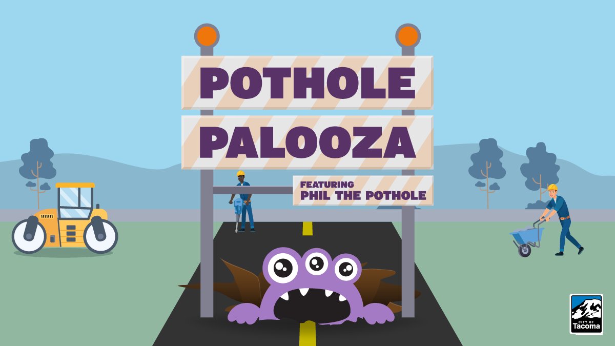 Phil regresa para ayudar a nuestro equipo de Operaciones Viales a reparar baches en todos los distritos del Consejo Municipal de Tacoma. Consulta las fechas y ubicaciones de su gira de primavera de 2026 en http://tacoma.gov/potholes.
