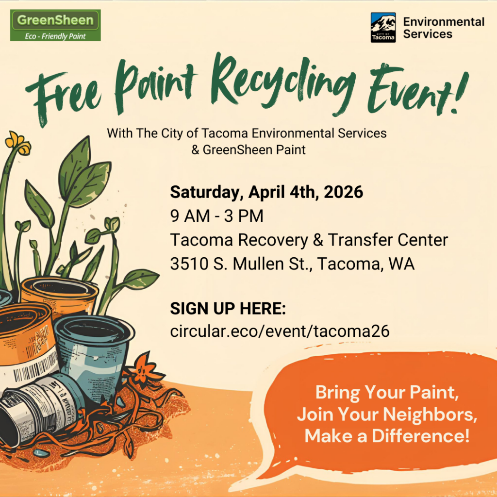 Join our Free Paint Recycling Event hosted by GreenSheen at Tacoma Recovery and Transfer Center!