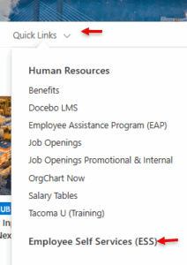 To review your current benefits, log in to Employee Self Service (ESS) from any computer connected to the City network or remotely using the RapidID App on your phone log or review the Confirmation of Benefits that was emailed to your city email address on October 27th. You may also access ESS via Quick Links on the City’s intranet site, Tacoma Hub.
