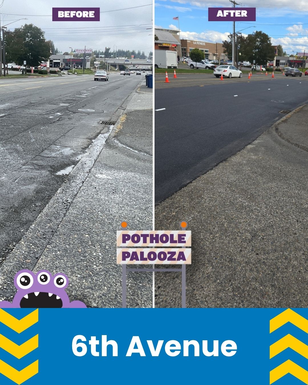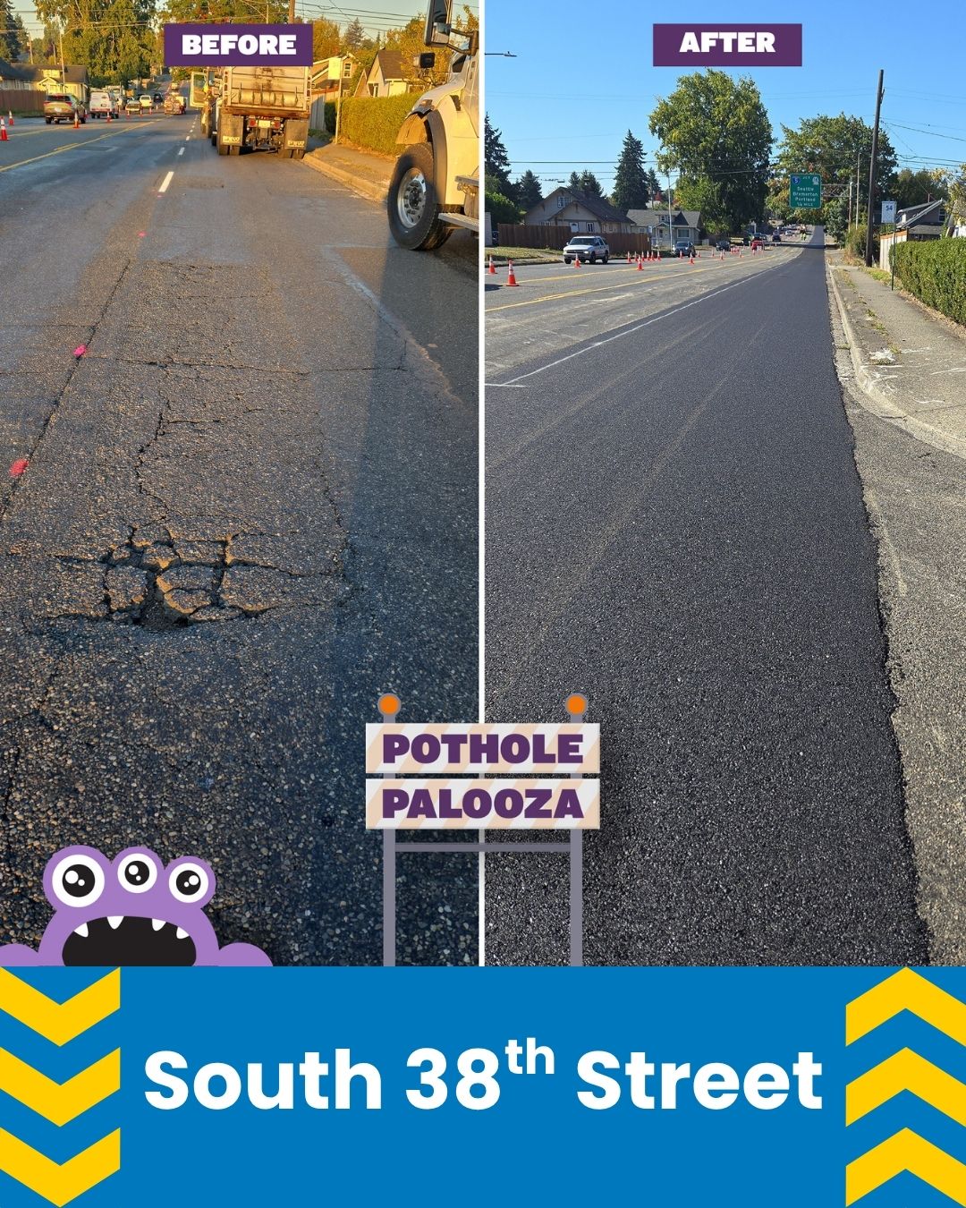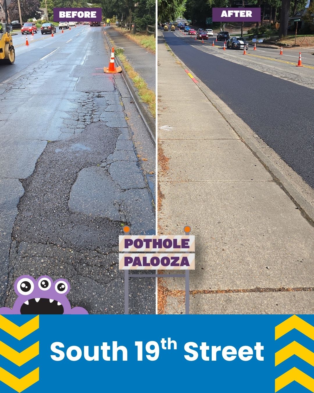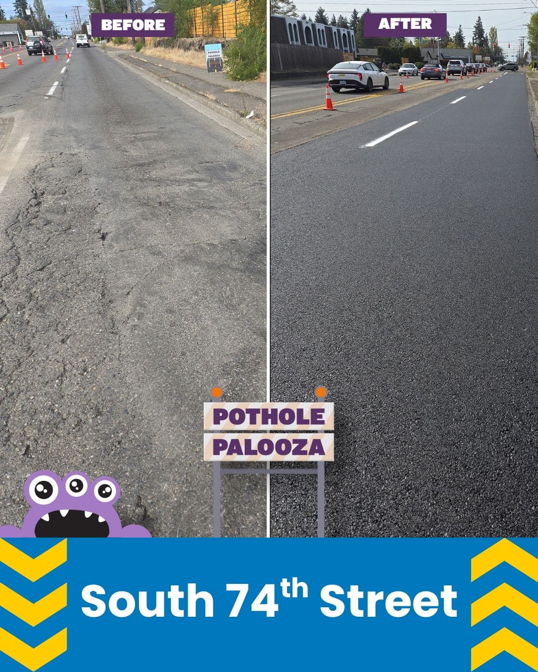 15,870 square yards of roadway removed and replaced in just 10 days — equivalent to repairing or preventing 8,927 potholes on Tacoma’s busiest streets