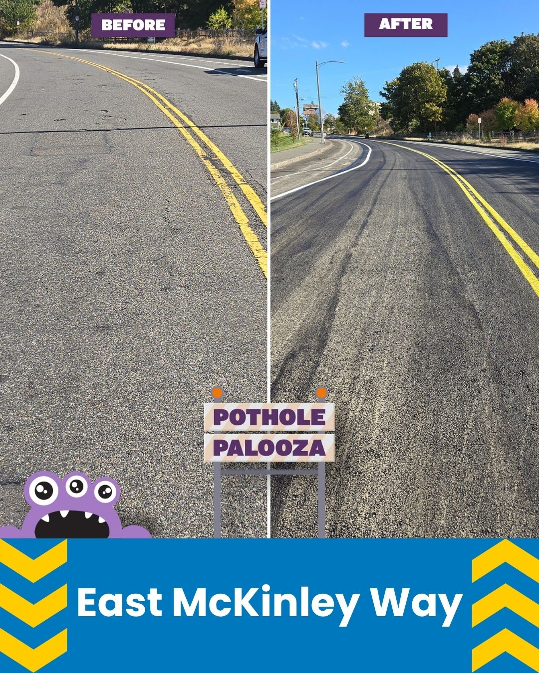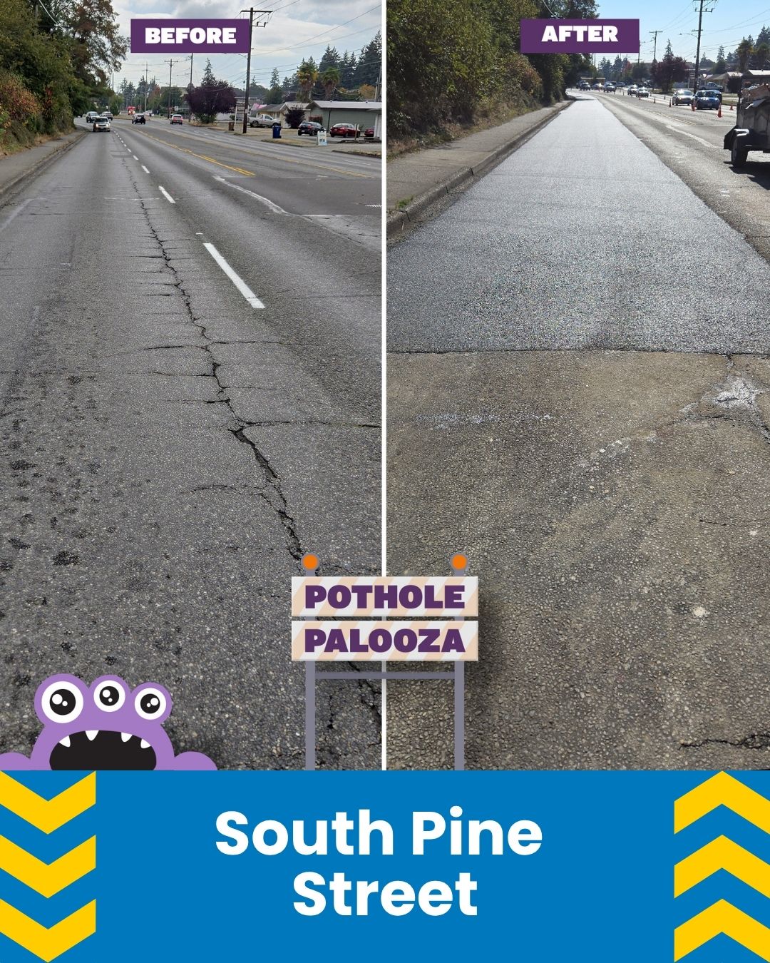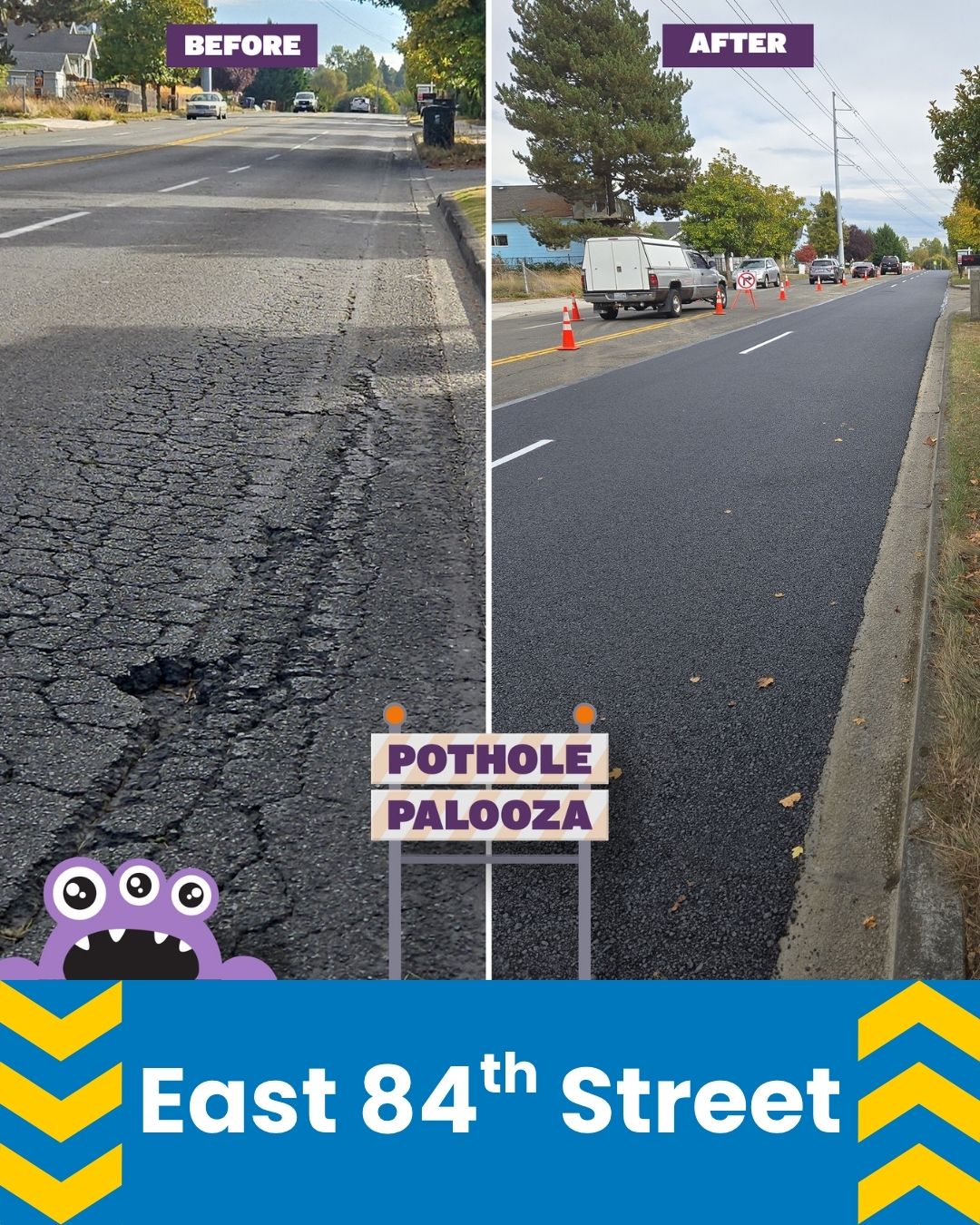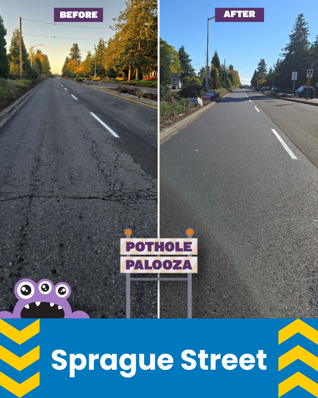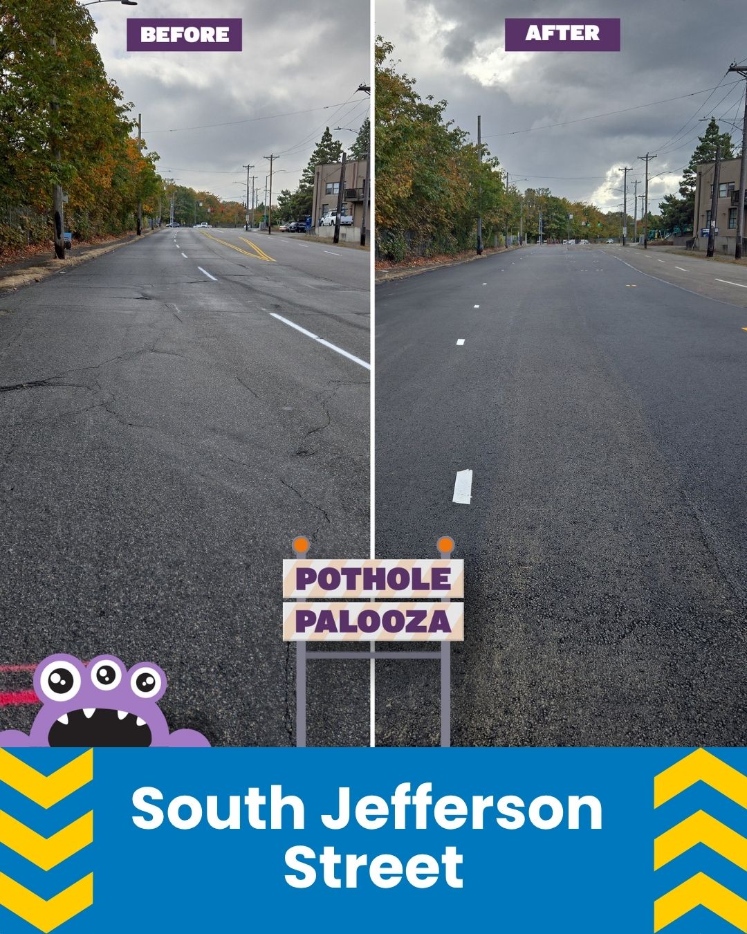 From September 30 through October 13, 2025, the City’s Street Operations Division were out for Pothole Palooza, a campaign featuring Phil the Pothole.