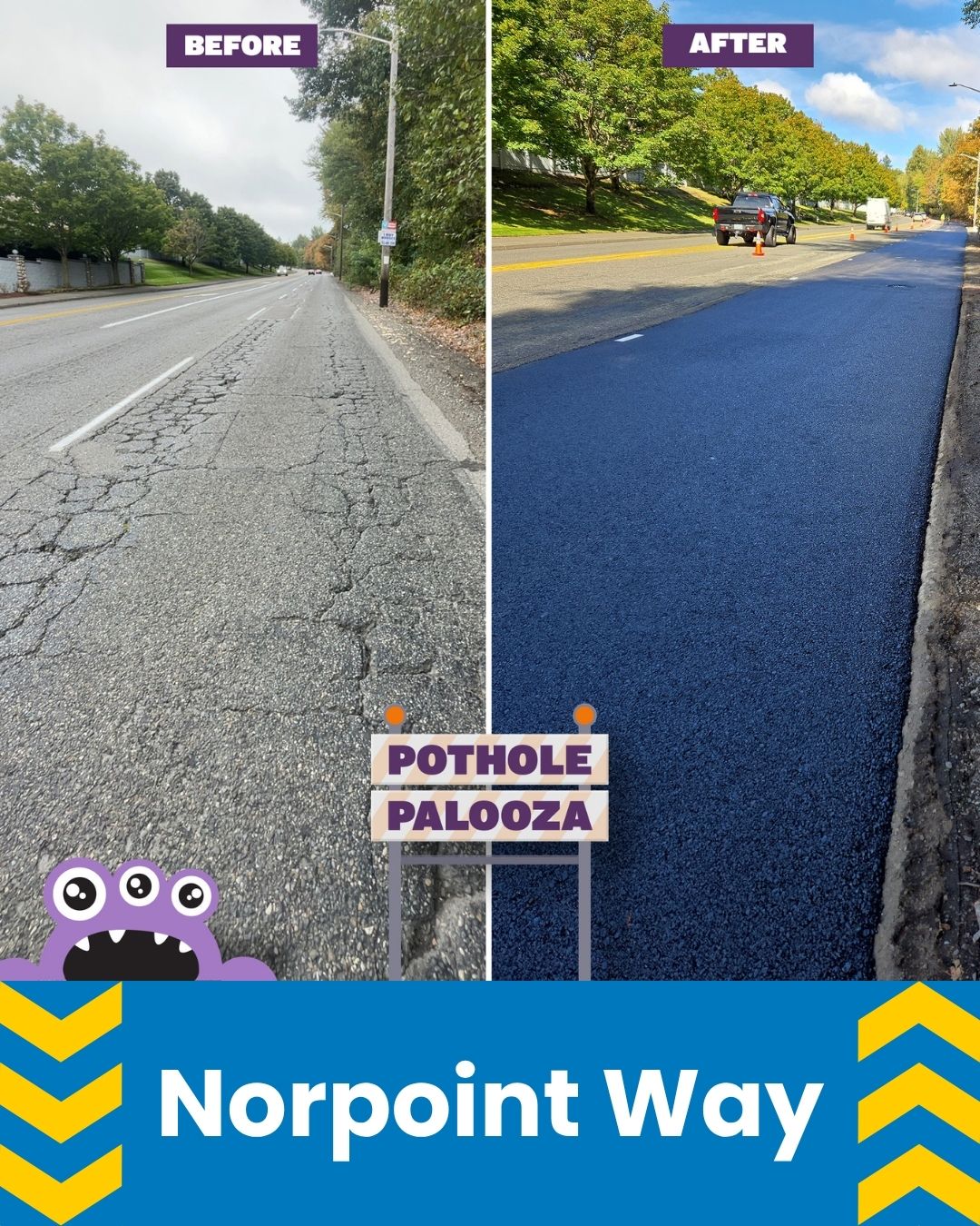 | Friday, October 3, 2025 | Norpoint Way NE/ Point Woodworth Dr NE (110 Block) to 1400' North | Northbound Curb Lane Replacement | District 2 |